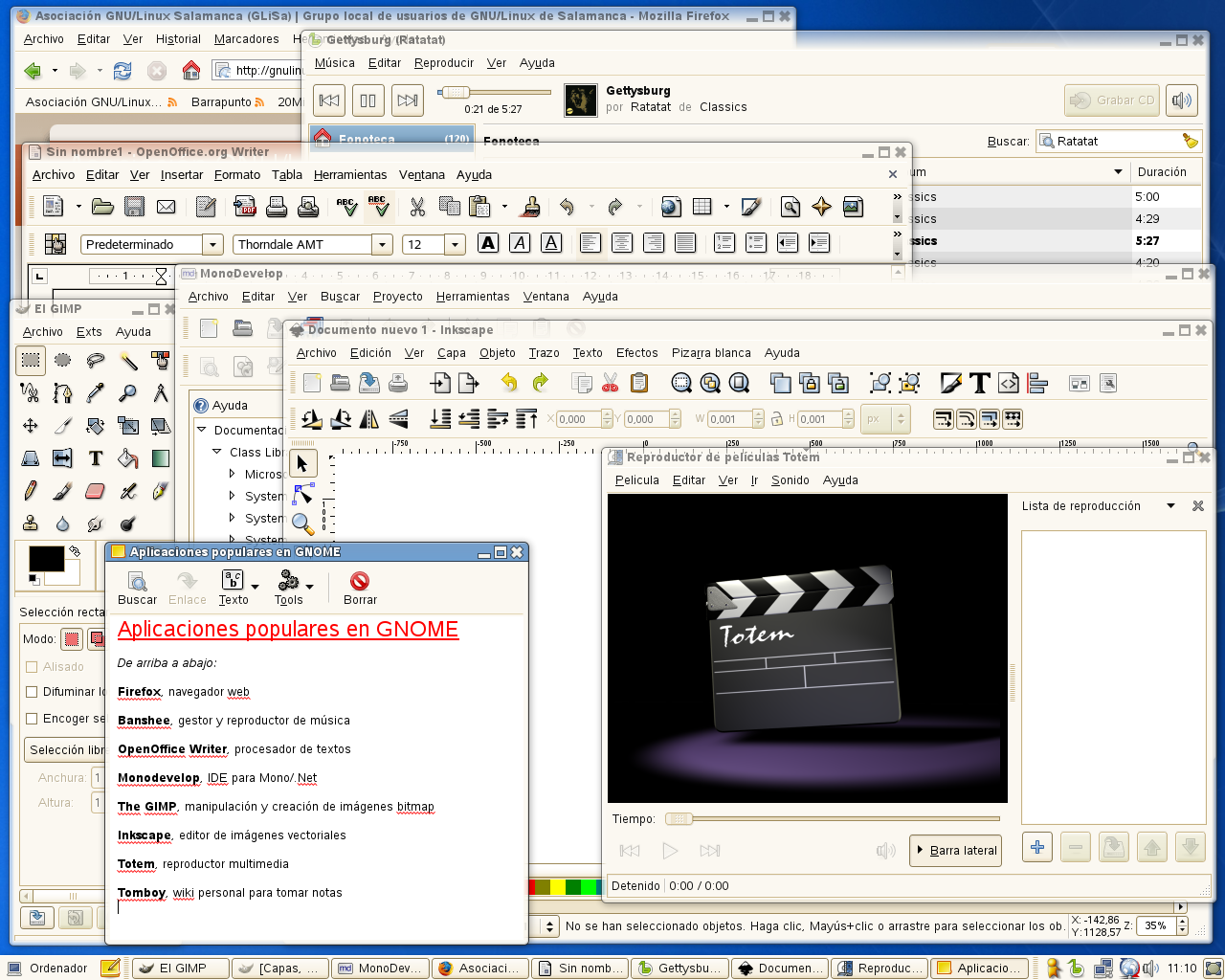 The GIMP no es sólo el programa de cuyas liberías gráficas se orginó GNOME, es también un potente editor de imágenes que satisfará las necesidades de cualquier usuario.