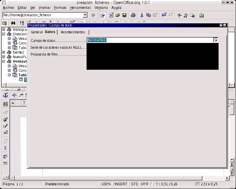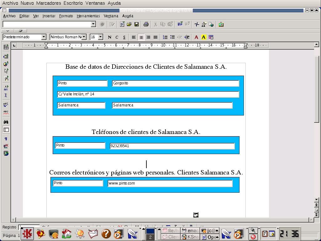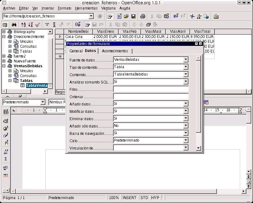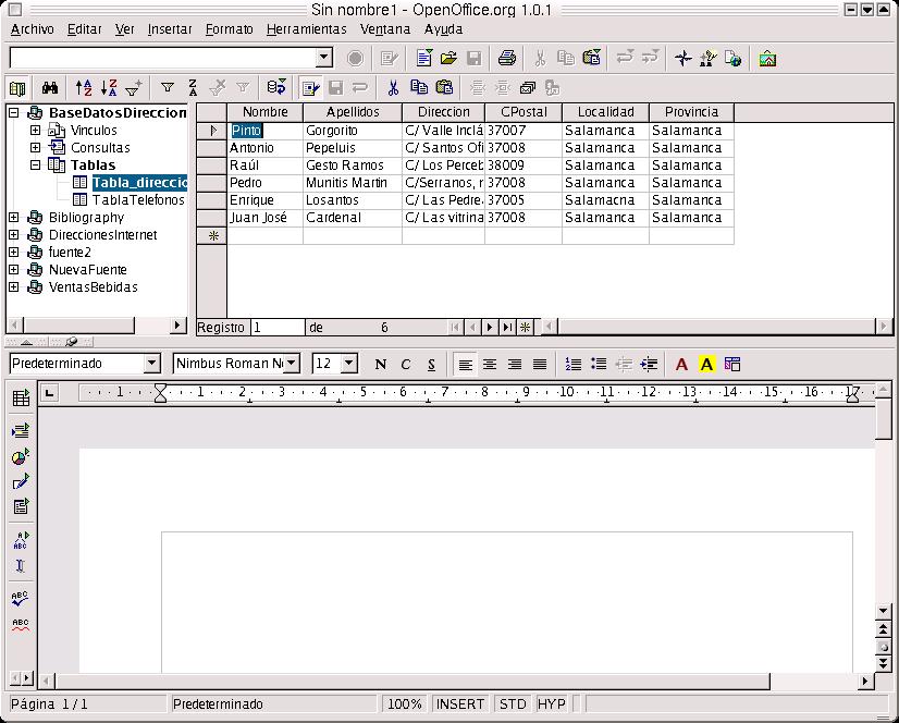 Otra aplicación interesante es que yo puedo controlar la base de datos desde una aplicación de texto. Imaginemos que estamos realizando un informe sobre ventas, beneficios... e interesa acceder a la base de datos. Puedo manipular dicha base desde el editor de textos Write.
