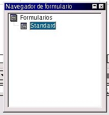 Para empezar, hay un botón en la barra de herramientas, que es Formulario. Al pulsar sobre dicho botón y mantenerlo durante unos pocos segundos, se presenta un cuadro de botones. Dentro de ese mismo cuadro, buscamos el navegador de formulario. Se nos presenta una pequeña ventana, con un sólo formulario, que es el que por defecto usa OpenOffice, llamado Standard. Para añadir uno nuevo, pulsamos sobre Standard con el botón derecho del mouse, y le decimos Nuevo--> Formulario.