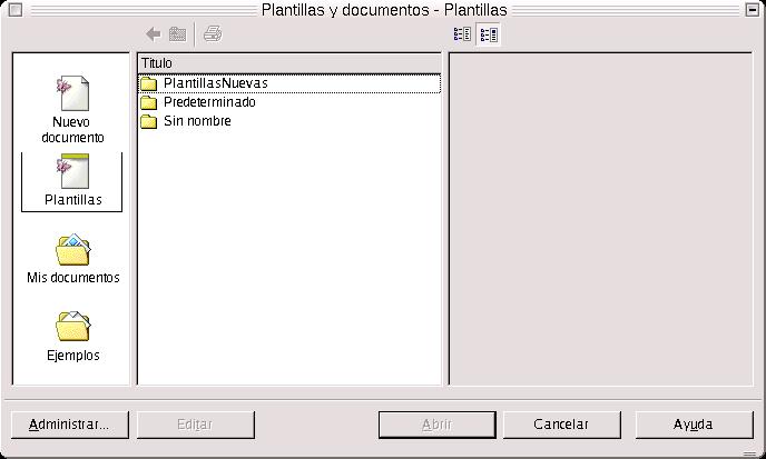 Una vez que se ha creado se puede usar ya como plantilla de documento. Para escribir un nuevo documento basado en un maestro, simplemente tenemos que ir a Archivo-->Nuevo-->Plantilla de documento. EN este momento es cuando aparece un cuadro de diálogo, llamado Plantillas y Documentos, en el cual selecciono la plantilla con la que deseo trabajar, que estará dentro del área en la cual la he guardado.