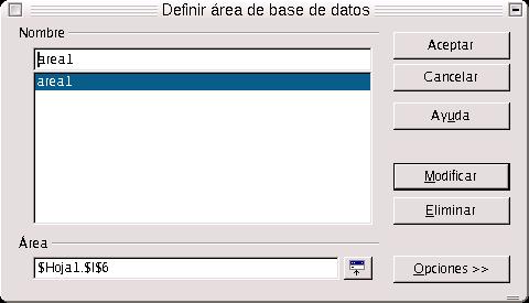 Para ordenar los datos, hay que seleccionar el área primero. Se selecciona en Seleccionar Area, y en el cuadro de diálogo se pone el nombre del área, y aceptamos. El área aparece en la pantalla como seleccionada. Entonces es cuando podemos empezar a ordenar los datos.