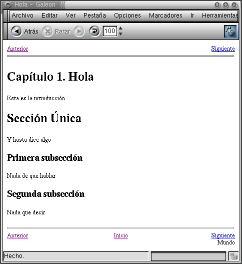 De igual forma, si hacemos click en el enlace de Siguiente, obtenemos que la página del primer capítulo luce de la siguiente forma: