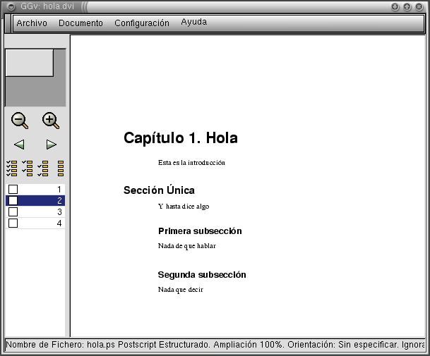 Nuestra idea es crear un pequeño libro con dos capítulos y varias secciones, subsecciones, párrafos entre ellos; para introducir una sección dentro de un capítulo la marquilla de utilidad será sect1, en caso de querer hacer una subsección dentro de ésta basta usar sect2 y así sucesivamente.