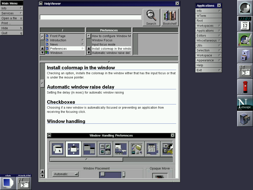 Here is a screenshot of the Window Maker guided tour, started from the application