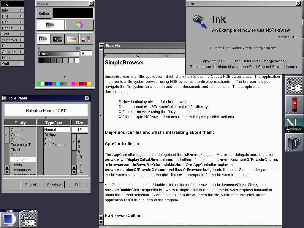from GNUstep main website. Ink is the work of Fred Kiefer and the version tested