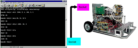 İletişimde TCP/IP kullanımı robotu konak (host) üzerinde çalışmakta olan işletim sisteminden bağımsız kılar. İstemci kullanıcıdan aldığı buyrukları robota aktarır. Üç çeşit buyruk vardır: hareket, durum ayarı ve durum isteği. İstemci giriş buyruğunun sözdizimini kontrol eder, sunucu için uygun bir ileti oluşturur soketleri kullanaraktan onu sunucuya gönderir.