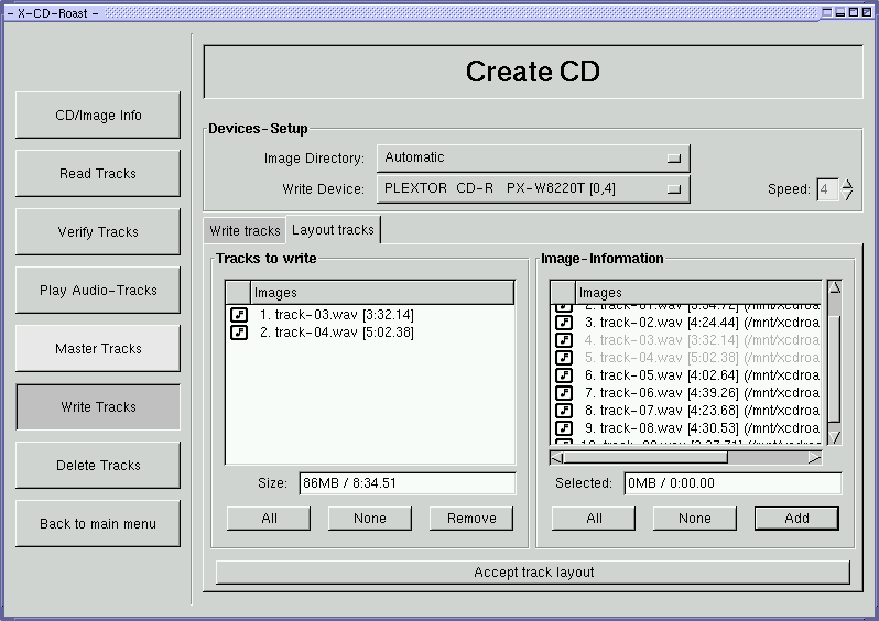 back to the panel "Write tracks" and press the button