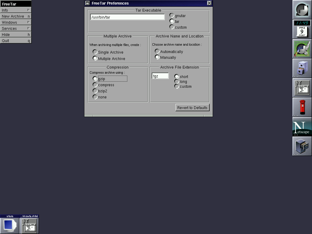 using Window Maker) to display a menu to select the file(s) to archive.