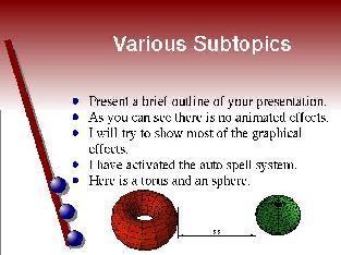 A presentation consists of a number of independent pages; which means that any text or figure that overflows the page is lost, no new pages are generated. The user has total control on the distribution and location of objects on the page. Normally we have a wide range of predefined objects available (geometric figures, icons, text boxes, and more).