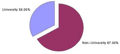 Otro aspecto de interés es ver la vinculación de las universidades con el software libre. Históricamente, muchas universidades han aportado de manera palpable al desarrollo de herramientas y proyectos. Podemos ver que la proporción de estudiantes y profesores universitarios involucrados es relativamente alta.