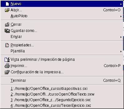 La barra de menús contiene todos aquellos menús que permiten que el usuario pueda trabajar con todas la funcionalidades que contiene OpenOffice.org
