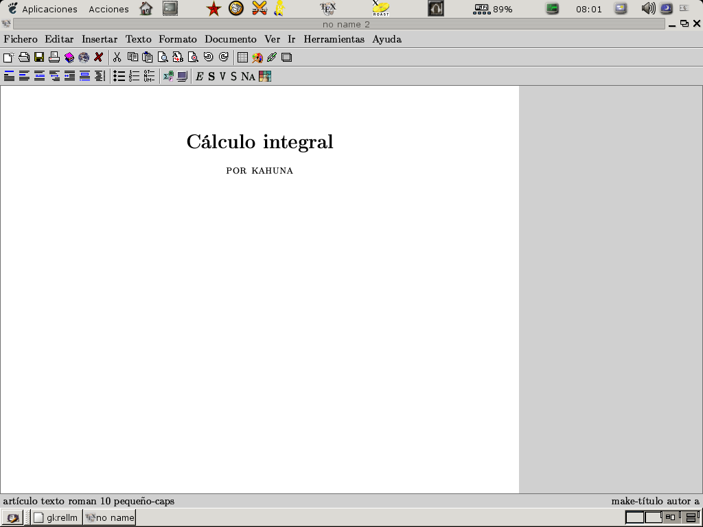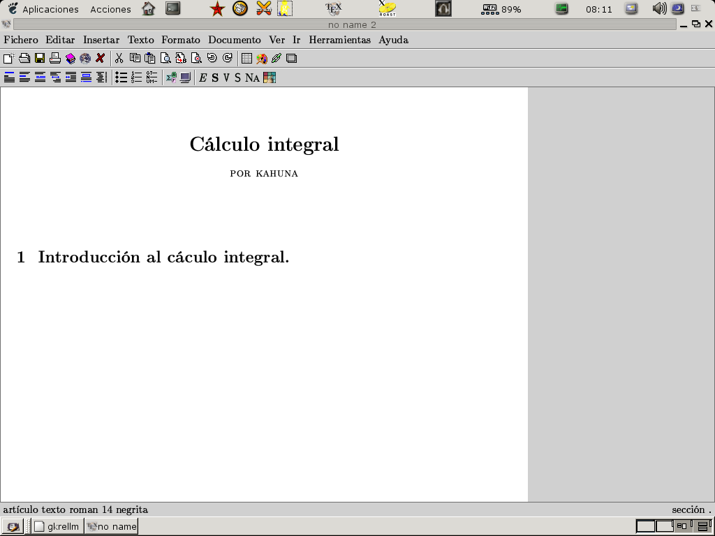 Crearemos un título para el artículo. Para ello hacemos clic en el icono "Introduce un título". Escribiremos "Cálculo integral". Adicionalmente podemos especificar nombre del autor del artículo, dirección de correo...