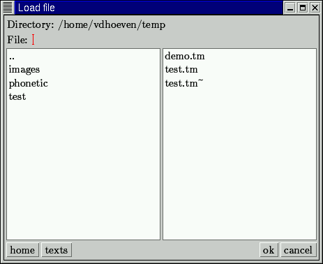 Si lo que queremos es cargar lo que habíamos escrito ya hace algún tiempo, presionamos F2 o bien hacemos clic sobre el icono de la carpeta. Se nos mostrará algo similar a esto, podremos hacer clic en el documento a abrir y luego en "vale".