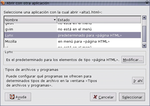 Si desde nuestro administrador de archivos (Nautilus) hacemos doble click sobre una página web almacenada en nuestro ordenador, se nos abrirá el programa que GuadalinexEDU tiene configurado por defecto para visualizar este tipo de páginas: el navegador Lynx. Para que Mozilla sea el navegador predeterminado, debemos proceder así: