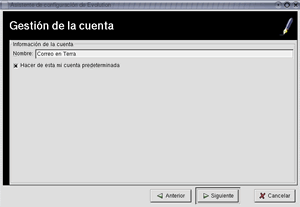 7. Aquí debemos poner un nombre a esta cuenta, el que queramos, dejamos lo que nos propone el programa o introducimos Correo de Terra. Conviene recordar que podemos tener varias cuentas de correo gestionadas por Evolution.