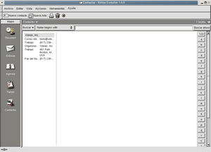 1. Si pulsamos sobre Contactos entramos en nuestra agenda de contactos. En principio sólo tenemos el de Ximian. Pulsamos en Nuevo Contacto para agregar más (observa que también pueden crearse listas)