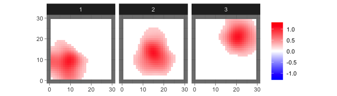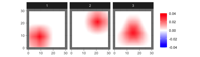 levelplot2D(sim$X[1:3,], lim = c(-0.12,0.12), sim$coords)