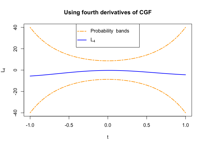 d4hCGF_plot(x); title("Using fourth derivatives of CGF")