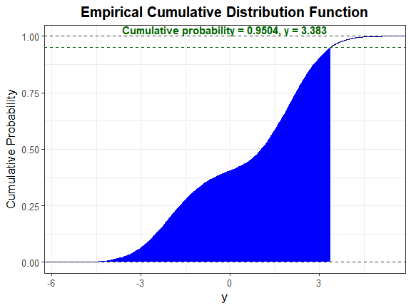 We will use the function SimMultiCorrData::sim_cdf_prob to determine the cumulative probability for Y up to y_star. This function is based on Martin Maechler’s ecdf function [@Stats].