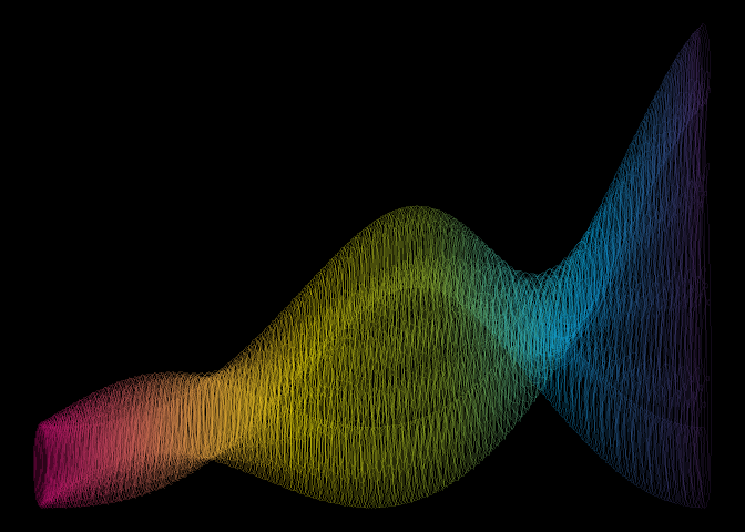 #| Abstract digital visualization featuring flowing, wave-like forms against a black background.