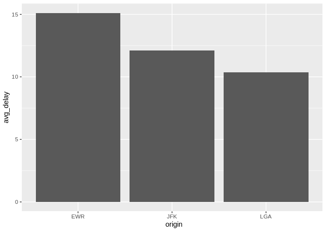 dbplot_bar(origin, avg_delay = mean(dep_delay, na.rm = TRUE))