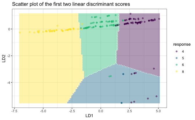 fitSmall <- folda(mpgSmall[, -1, drop = FALSE], mpgSmall[, 1])