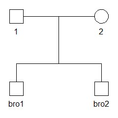 We start by creating and plotting a pedigree with two brothers, named bro1 and bro2.