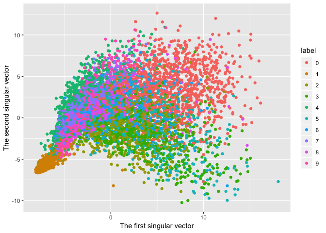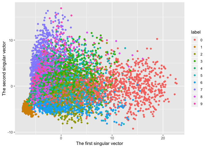 Plot the original data on the first and second singular vector plane.
