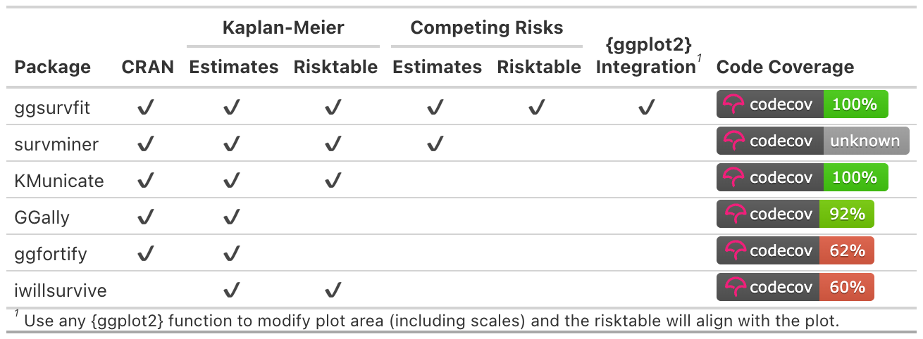 time-to-event (aka survival) summary figures with ggplot2. The concise