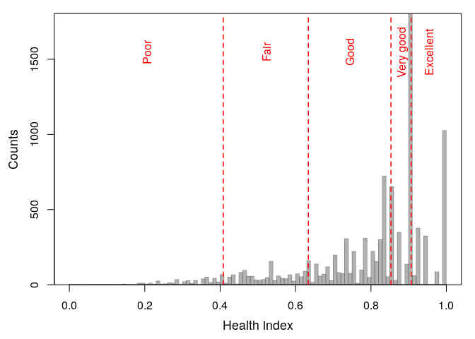 Figure 3. Health index cut-points for adjusted health levels.