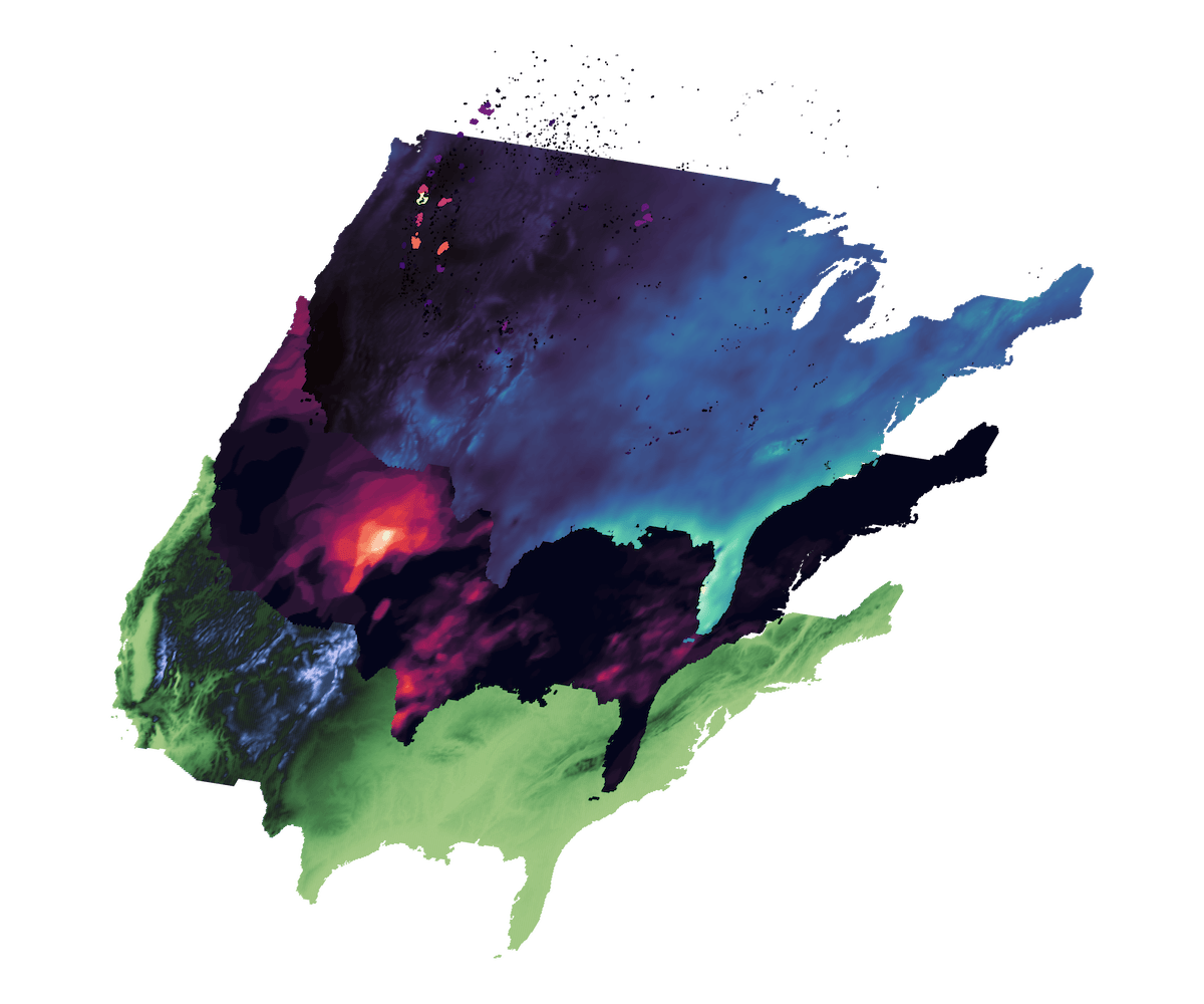 Some more realistic looking data (DEM, drought, precipitation, and wildfires for continental USA):