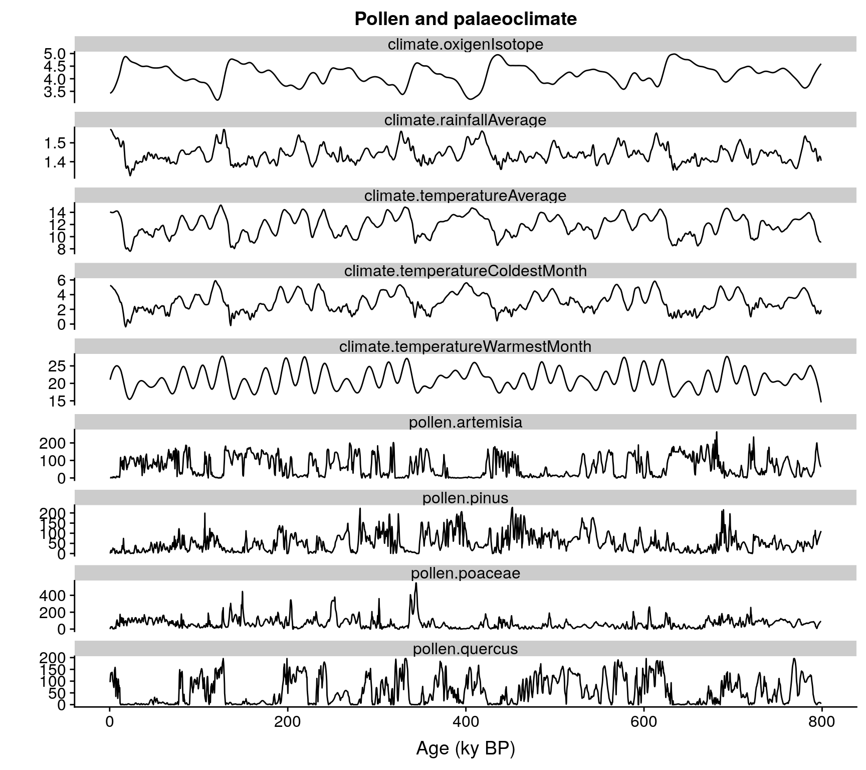 ggtitle("Pollen and palaeoclimate")
