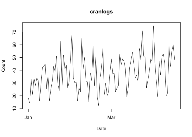 These additional date formats help to create convenient shortcuts. Let’s say you want the year-to-date download counts for ‘rstan’. With cranlogs::cran_downloads(), you’d type something like: