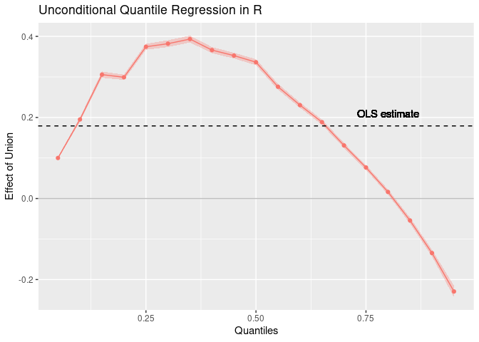 #> Warning in plot.rifreg(fit_uqr, varselect = "unionyes"): Standard errors have not been bootstrapped!