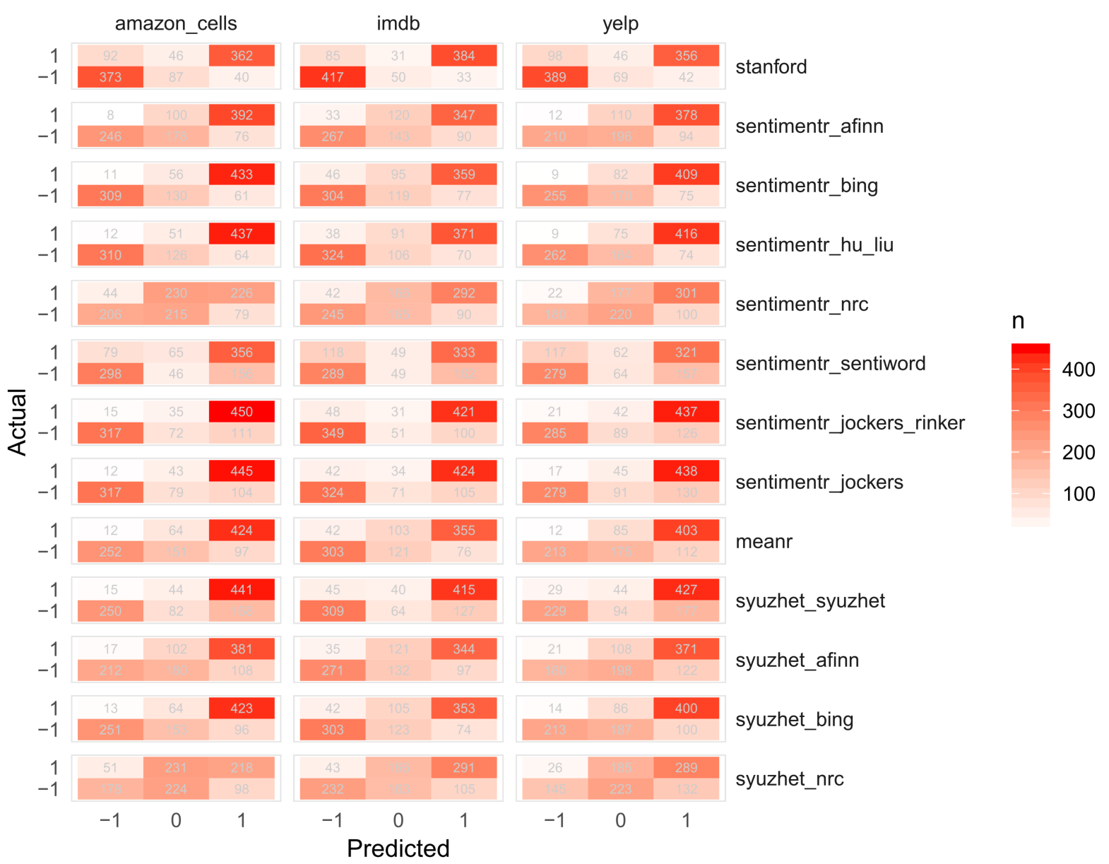 Generally, the sentimentr algorithm out performs