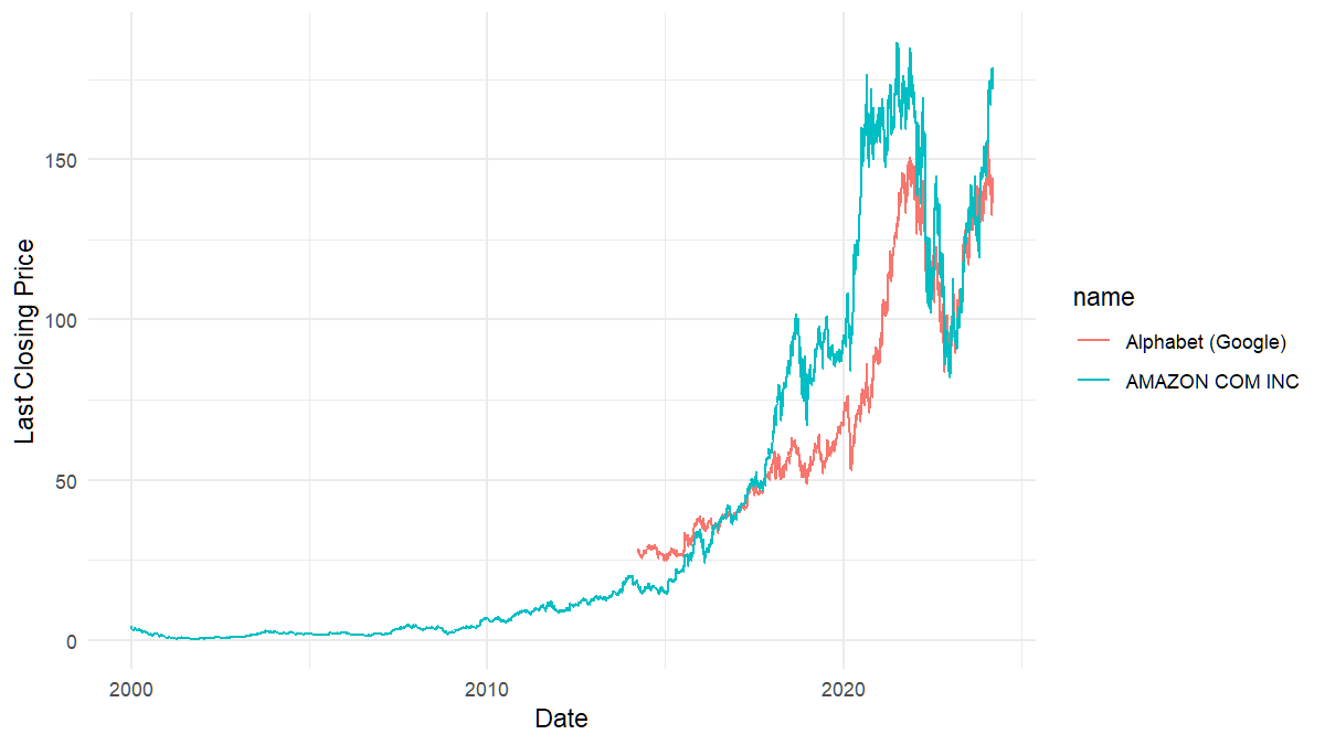 tickers <- c("AMZN", "GOOG") # Amazon, Google