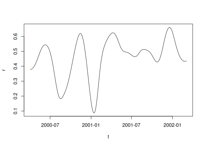 example1 <- with(d, tcor(x = SP500, y = FTSE100, t = DateID, kernel = "normal"))