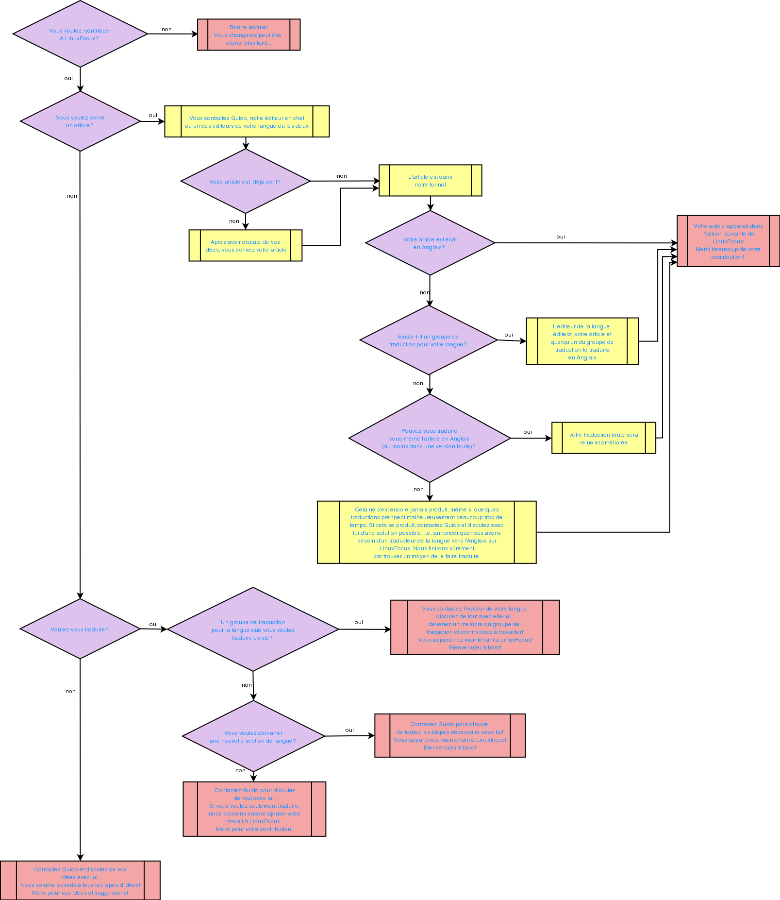Par exemple, j'ai créé un diagramme qui décrit comment vous pouvez contribuer à LinuxFocus: