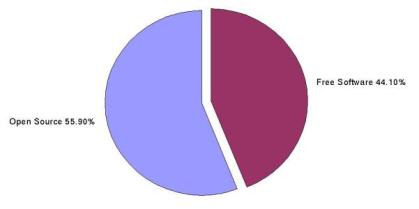 En cuanto a la pregunta de si prefieren "Open Source" o "Free Software", se puede ver que en términos globales, hubo más desarrolladores que eligieron Open Source en vez de Free Software a la hora de responder esta pregunta. Hubo algunos que se quejaron, indicando que la pregunta no era suficientemente clara. Nuestra intención no era, ni mucho menos, aclarar conceptos; sólo queríamos saber de la manera más intuitiva posible, qué término escogían los desarrolladores. También hemos podido comprobar al correlacionar las respuestas de este apartado y las nacionalidades que mientras la dualidad de significados en lengua inglesa ha llevado a esta división de opiniones, en países como Francia o España, el término software libre (o logiciel libre) supera en aceptación al de Open Source.
