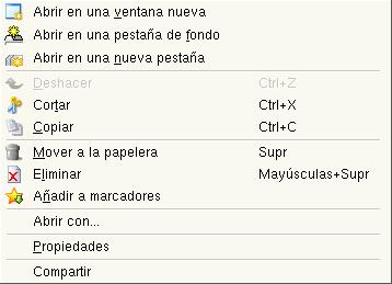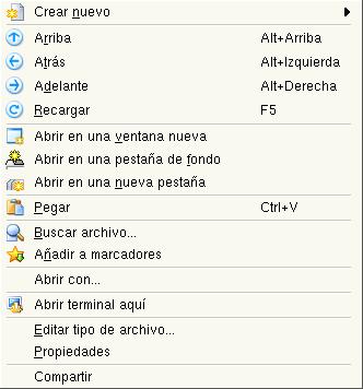 Figura 3-2. Menu desplegable al pulsar el boton derecho sobre otro punto de konqueror.