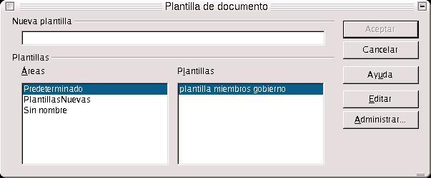 Una vez que se ha creado se puede usar ya como plantilla de documento. Para escribir un nuevo documento basado en un maestro, simplemente tenemos que ir a Archivo-->Nuevo-->Plantilla de documento. EN este momento es cuando aparece un cuadro de diálogo, llamado Plantillas y Documentos, en el cual selecciono la plantilla con la que deseo trabajar, que estará dentro del área en la cual la he guardado.