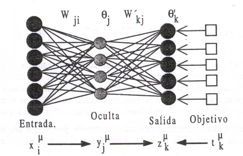 Este es uno de los tipos de redes más comunes. Se basa en otra red mas simple llamada perceptrón simple solo que el número de capas ocultas puede ser mayor o igual que una. Es una red unidireccional (feedforward). La arquitectura típica de esta red es la siguiente: