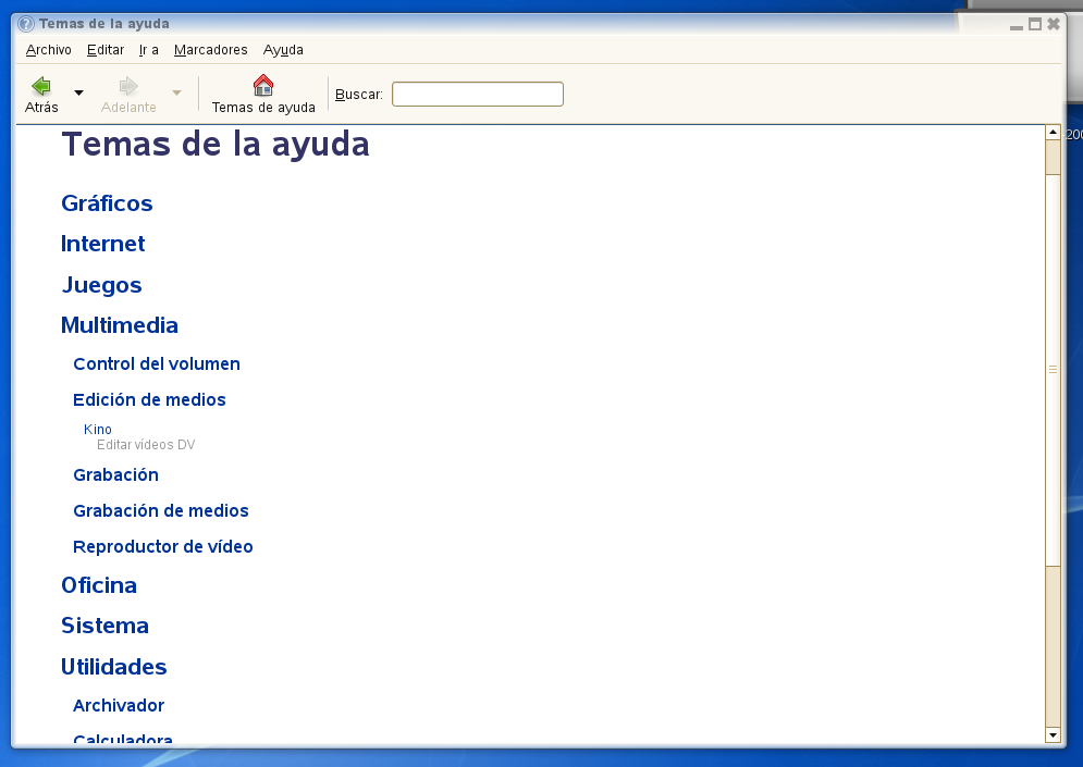 Otra fuente en la que es bueno buscar, es en la propia ayuda de GNOME. Cada aplicación tiene la opción "Ayuda" a través de la cuál podremos acceder a la documentación específica. Esta ayuda se presenta a través de una herramienta que se llama Yelp, a la que podemos acceder a través del menú principal (Ordenador) o pulsando "F1" para acceder a los manuales que tengamos instalados, ya sean de GNOME o de openSUSE