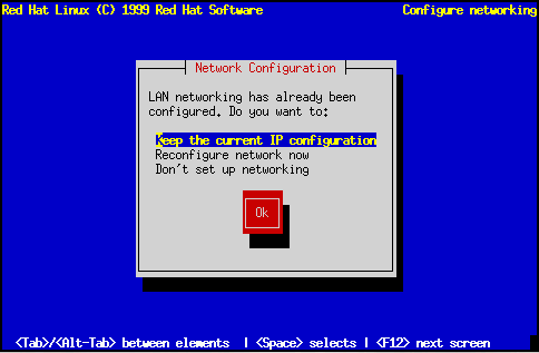 A continuación, el programa de instalación le ofrece la oportunidad de configurar (o reconfigurar) su red. Si está instalando desde CD-ROM o desde un disco duro local, el programa de instalación le pregunta si desea configurar la red. Si usted elige No, su sistema Red Hat Linux será una estación de trabajo independiente. Si elige Si, usted podrá configurar su red como se describe a continuación.