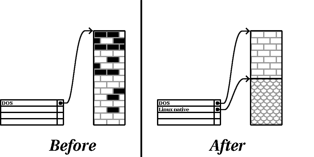 \textsfAtención: Como muestra la figura \referfig:b4-destructive-repartitioning ¡toda información presente en la partición original se perderá si no hace una copia de seguridad adecuada