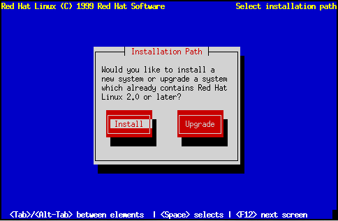 Después de elegir un método de instalación, el programa de instalación le preguntará si desea instalar [install] o actualizar [upgrade] (vea la figura fig:inst-upgrade).