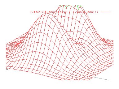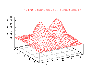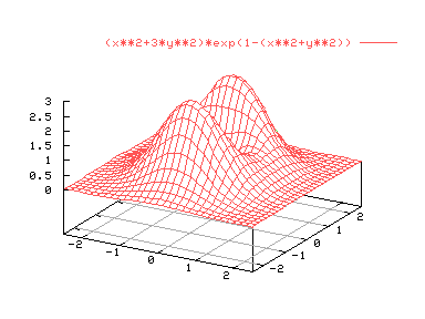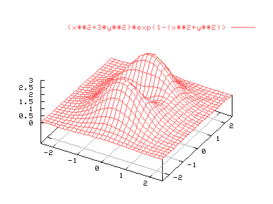 splot [-2.5:2.5][-2.5,2.5] (x**2+3*y**2)*exp(1-(x**2+y**2))