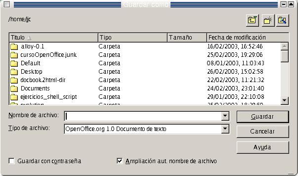 El aspecto del cuadro de diálogo Guardar Documento es el siguiente: