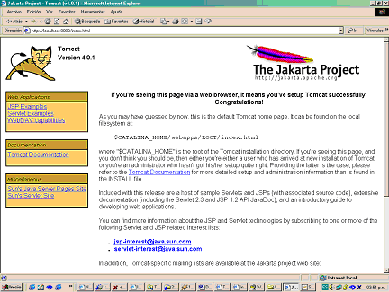 Lo primero que debe hacer es descargar el instalador. Ésto lo puede hacer desde este enlace en el cuál encontrará la última versión de este producto de licencia libre. Para el momento en el que este documento estaba siendo elaborado la versión más reciente de Jakarta Tomcat era la 4.0.3 y ya existía una alfa para la versión 4.1.0