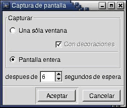 Se ofrece también la posibilidad de introducir un tiempo de retardo en segundos que facilitará la disposición de los elementos que queramos capturar en la pantalla.
